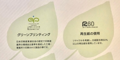 本製品は、再生紙(R60)を使用して作製しています。再生紙を利用することで再生紙マーク(R60)を入れることが出来ます。