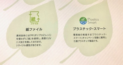 本製品は環境省の推進する「プラスチック・スマート」キャンペーン活動に賛同した製品です。当社の擬似エンボス紙ファイルを作製していただくことでプラスチック・スマートマークを入れることが出来ます。