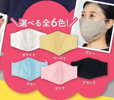 ・マスク色:6色からお選びいただけます(ホワイト、ベージュ、グレー、ブルー、ピンク、ブラック)