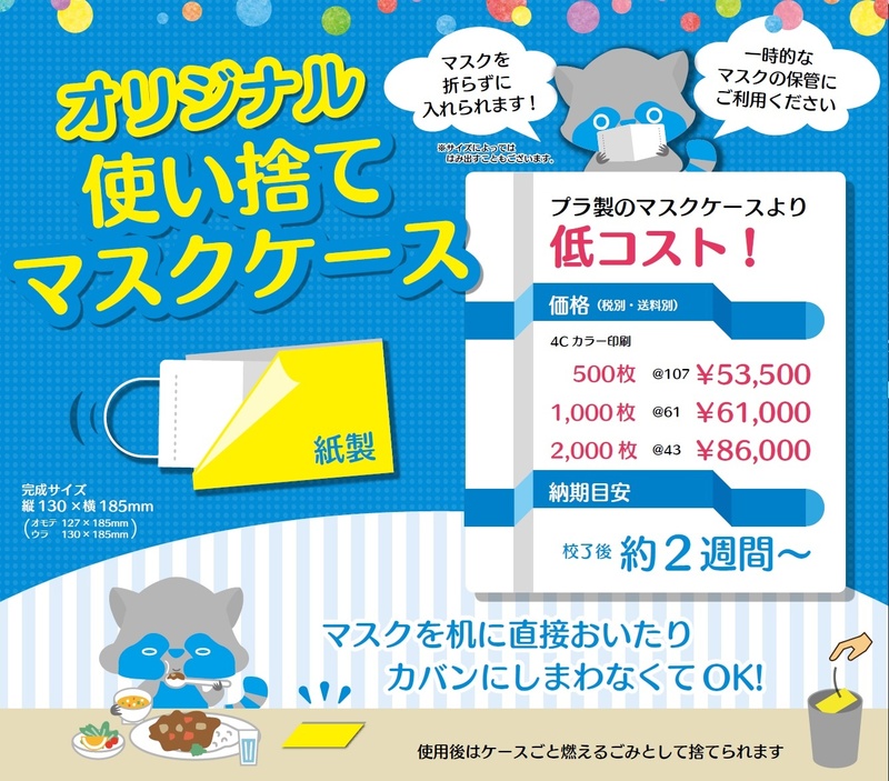 飲食店様向けにオリジナルデザインの「使い捨てマスクケース」のご案内です。