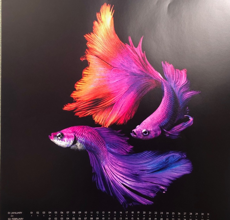 自分が動いて向きを変えるたびに、カレンダーの中の水中生物たちも表情を変え、本当に生きているようにさえ感じます。