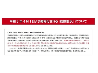 これは約1か月後に迫った消費税の総額表示義務化を見据えた動きのようです。