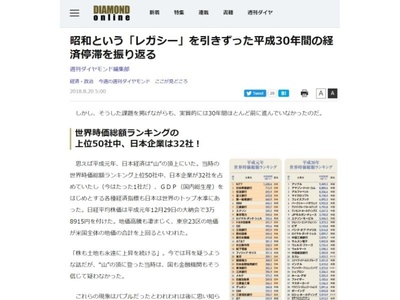 そうした環境下で働いていた結果、平成元年では、企業の時価総額ランキングで日本企業が世界トップ50社のうち32