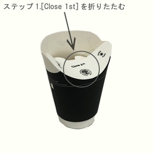 上部の白い部分を折りたたむことでプラスチック製の蓋を付けずにドリンクを提供することが出来ます。