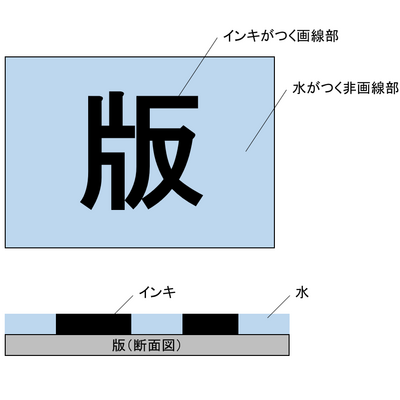 印刷するための版の画線部(印刷される部分)と非画線部(印刷されない部分)に明確な高低差がない印刷方法です。
