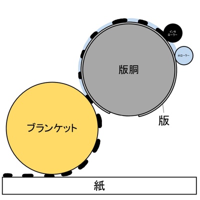 インキを一旦ブランケットに乗せて(オフ)から、紙に転写(セット)することから、オフセット印刷と名付けられたそうです。
