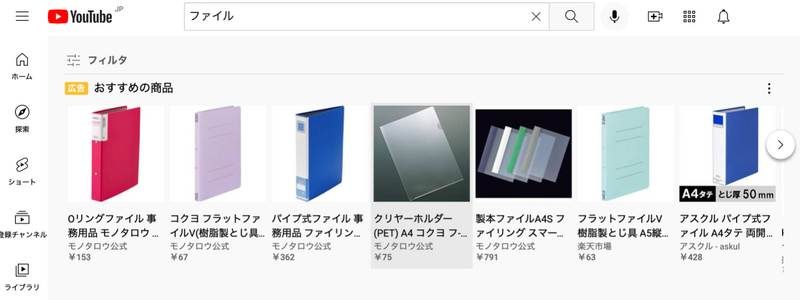 YouTube内で検索した結果で表示されたページの検索結果上部に表示されます。また、PCだと右側の関連動画スペースに広告が表示され、モバイル(アプリ)だと再生している動画の下に表示されます。