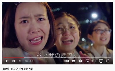 ドミノ・ピザは持ち帰りで利用すると二枚目が無料になるというサービスがあるのですが、「二枚目」「持ち帰り」というキーワードをうまく使ったユニークな動画広告です。男性バージョン・女性バージョンどちらもおもしろいです!