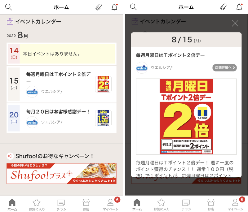 Shufoo!クーポン アプリ表示