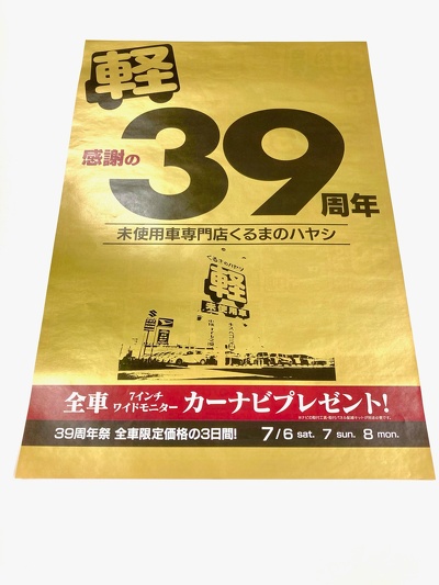 私自身が実際に印刷させて頂きました事例になります。営業品目の中で私が一番好きな折込チラシ!少し前のお話になりますが、本当の金色で折込チラシを行いたいとお客様より相談頂いたことがきっかけになります。
