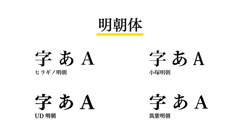 明朝体は、横に対して縦線が太く、ウロコと呼ばれる三角のアクセントがあるフォントです。10世紀の中国で盛んになった、木版印刷で使われた書体から始まったといわれています。主に、教科書や新聞に使われていて、長文に適しているフォントです。日本語の組版にはぴったりです!
