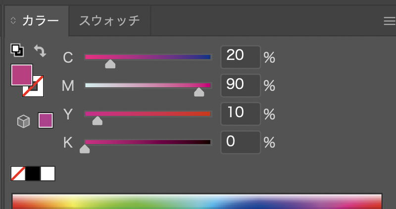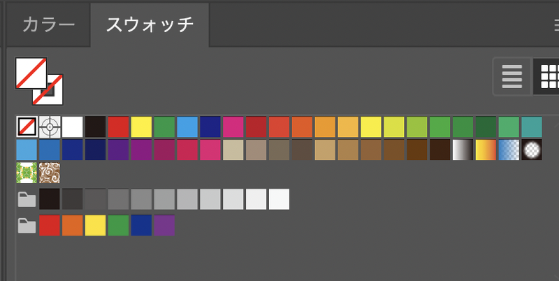 スウォッチパレット▶スウォッチ内にある色を選択すると図形や文字をその色にすることができます。