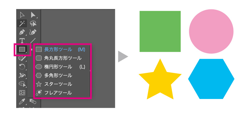 図形を簡単に使えるツールがあるのでこれらを選択して図形を作成します。