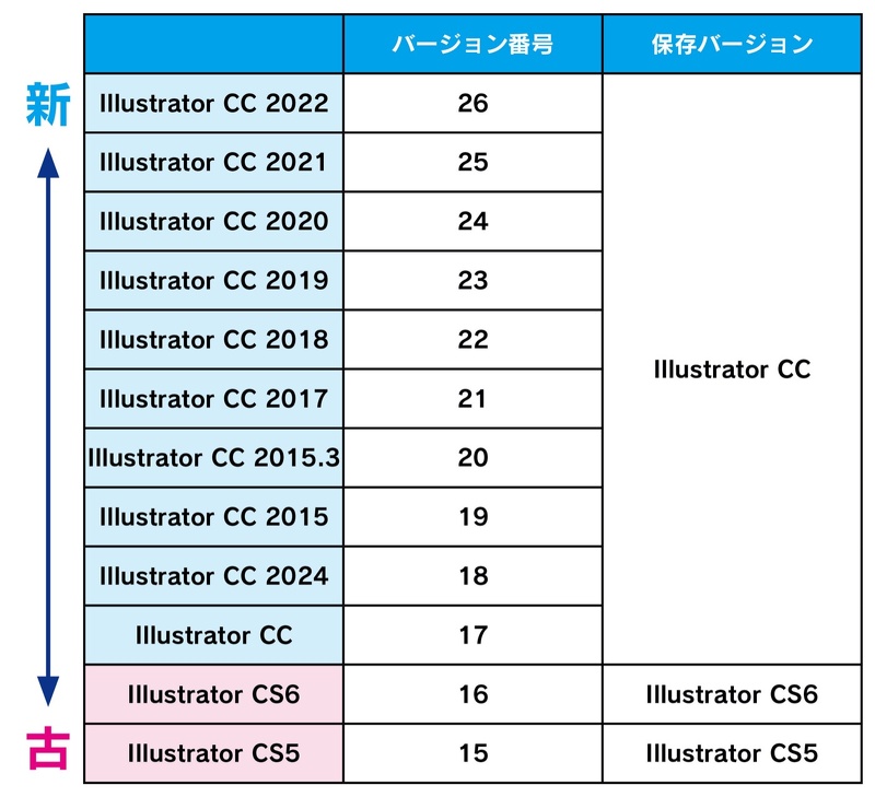 イラレにはバージョンがあります。現在のバージョンは下記のようになっています。