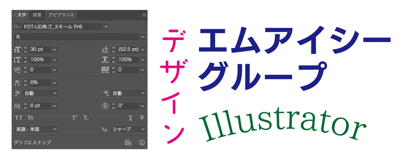 〈ウィンドウ〉→〈書式〉→〈文字〉から文字パレットを出すと、フォントや大きさなどを変更できます。