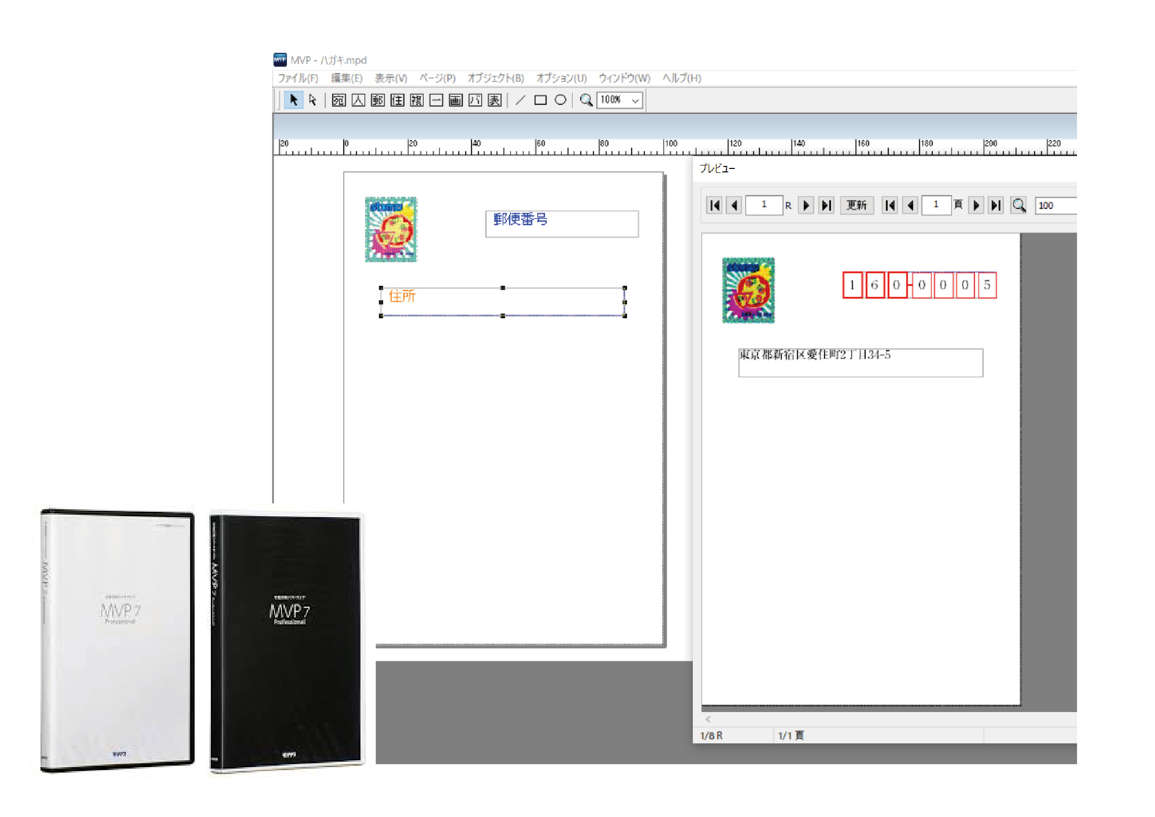 ということです。年賀状(ハガキ)や挨拶状封筒などを編集ソフトで作成する場合、住所はどれくらいの大きさで、社名がこれくらいで、氏名がこれくらい。文字の位置も社名に対して役職や氏名がこのくらいという風に設定する必要があります。しかしバリアブルソフトは住所、社名、氏名などのセルを設定しておけば自動で大きさや位置などのバランスを整えてくれます。挨拶状封筒などの体裁にはある程度のデザインの知識やバランスなどのセンス的なものが必要だと思います。しかし可変ソフトを使えばそれを解消してくれるためデザインの経験のない方でもでき、後進育成も非常に容易となるのです。