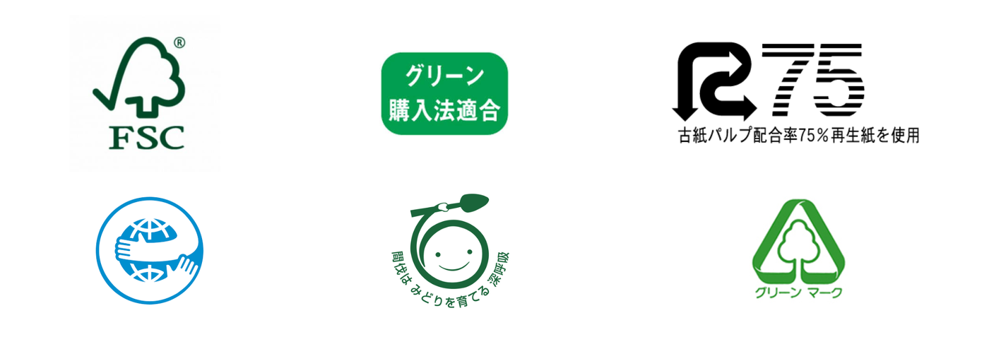 こうした認証マークのついた紙を選ぶことで、見た目ではわからない「環境配慮の中身」を可視化し、社外にもアピールすることができます。