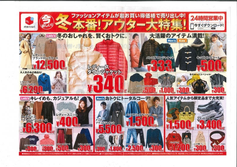フリマアプリでお馴染みの「メルカリ」の折り込みチラシです。