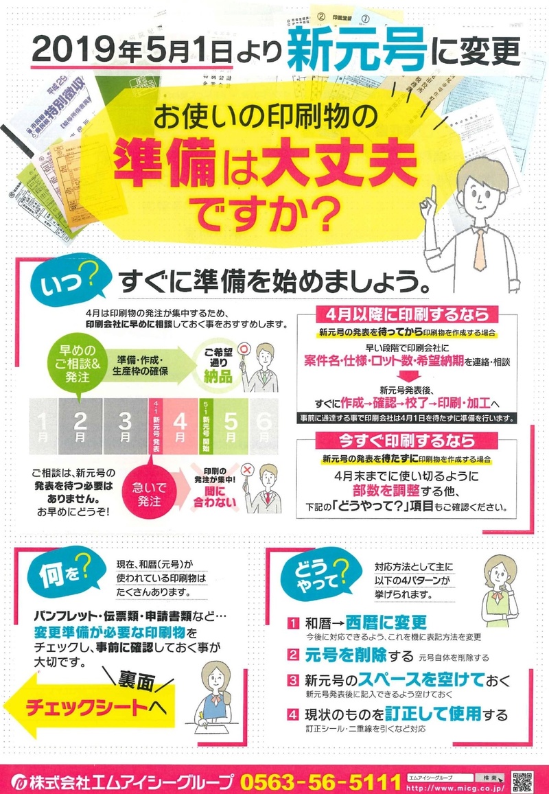 元号改訂に係わる印刷物の訂正はエムアイシーグループまでご相談ください♪