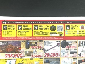 お得感を強くうたったチラシタイトルに加えて、「電話での安心サポート体制」「注文方法をオペレーターがサポートします」といった内容が紙面の中で大きくうたわれています。