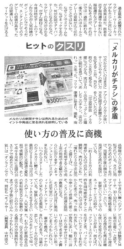 昨年、フリマアプリの「メルカリ」が折込チラシを実施したという事で記事を書かせていただきました。